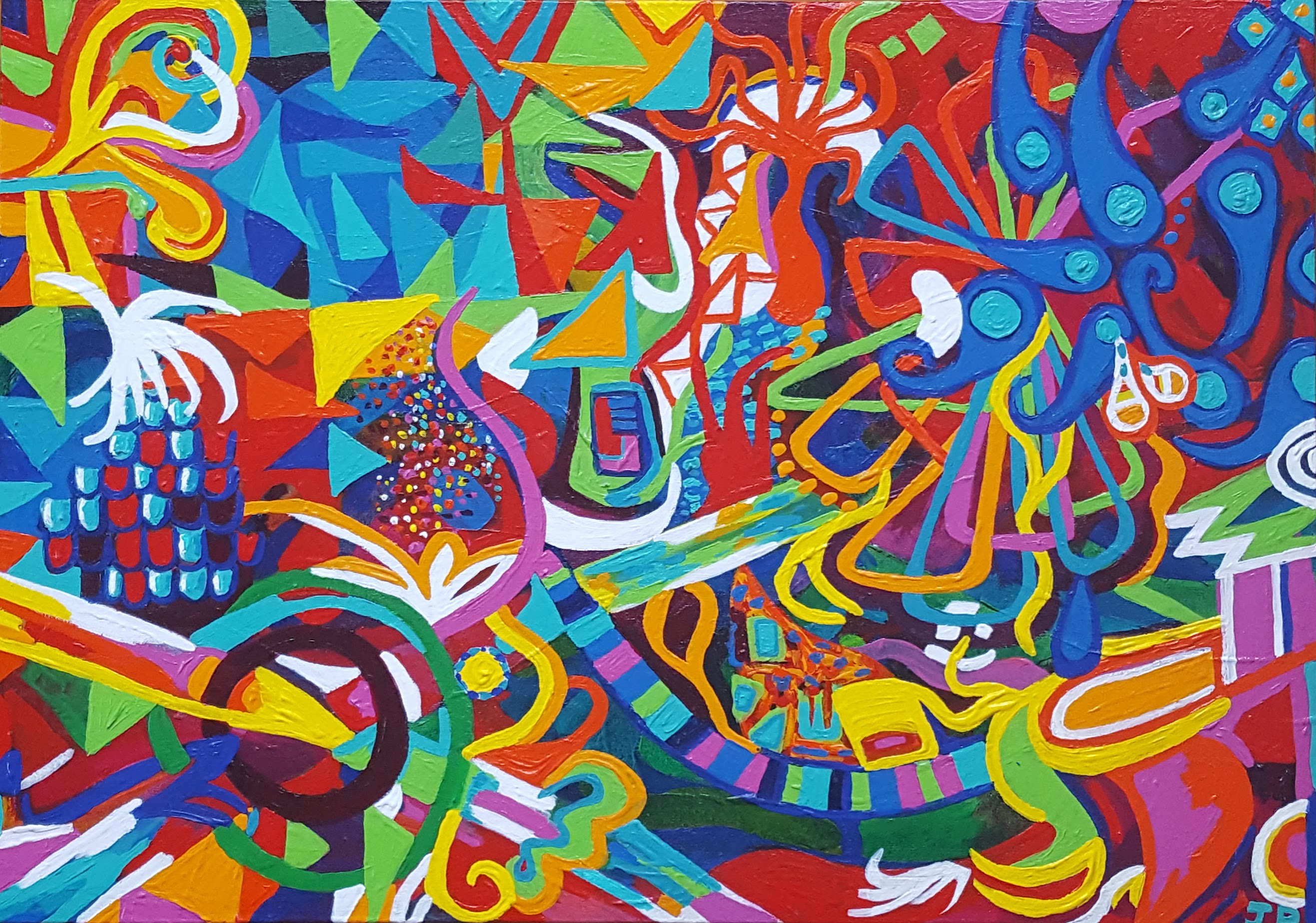 Explosion of Colour 0 August 18, 2023 Written by Joanne Pedro ‘Explosion of Colour’ certainly uses a lot of colour, in the acrylic paint I used here. Painting on canvas. Related