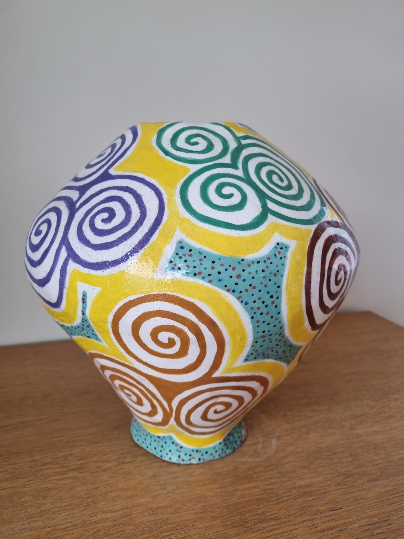 Tri Spiral Pot 0 August 27, 2023 Written by Joanne Pedro ‘Tri Spiral Pot’ is a ceramic hand built coil pot that I made, and underglazes and clear glaze are also used on it. Related